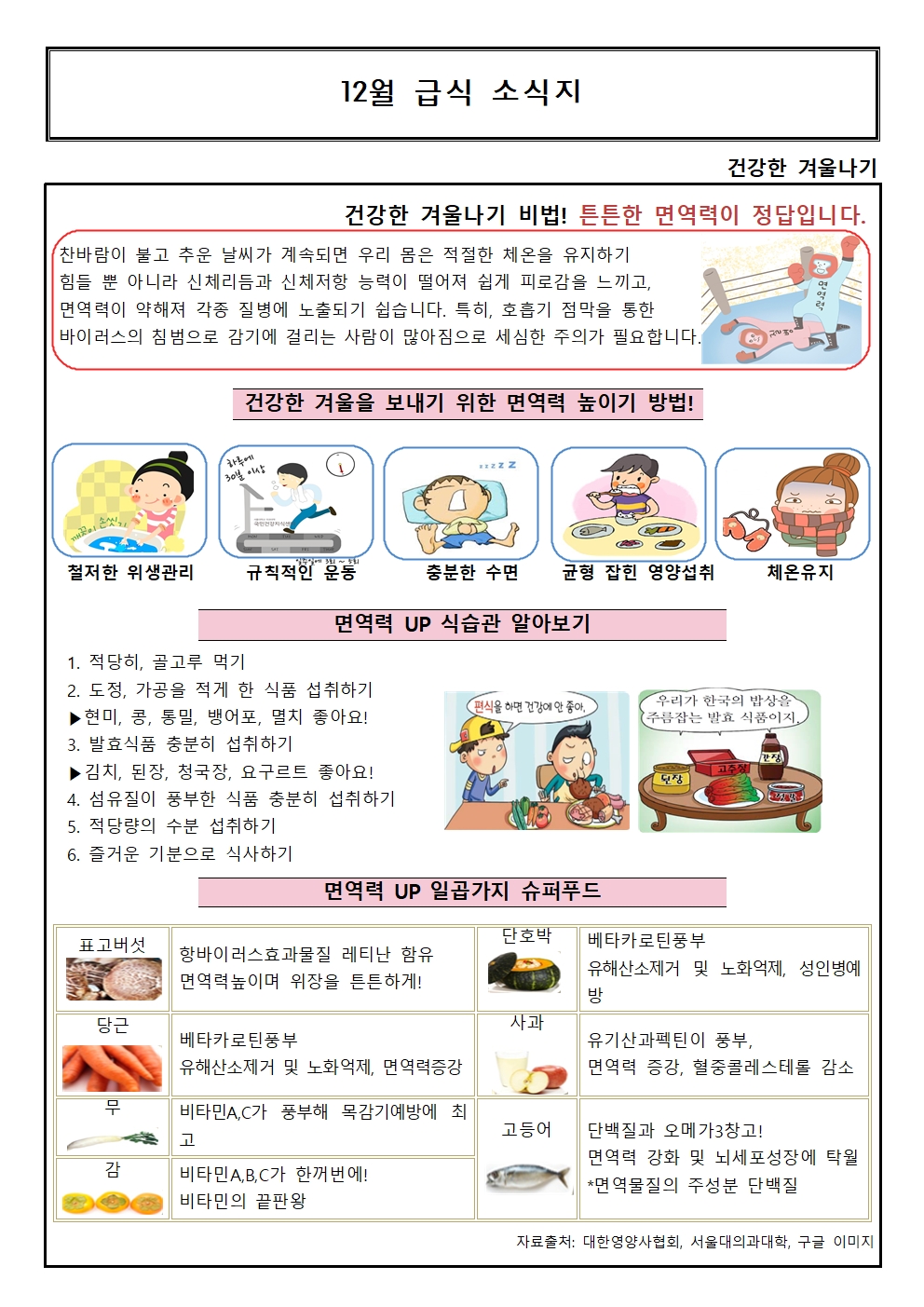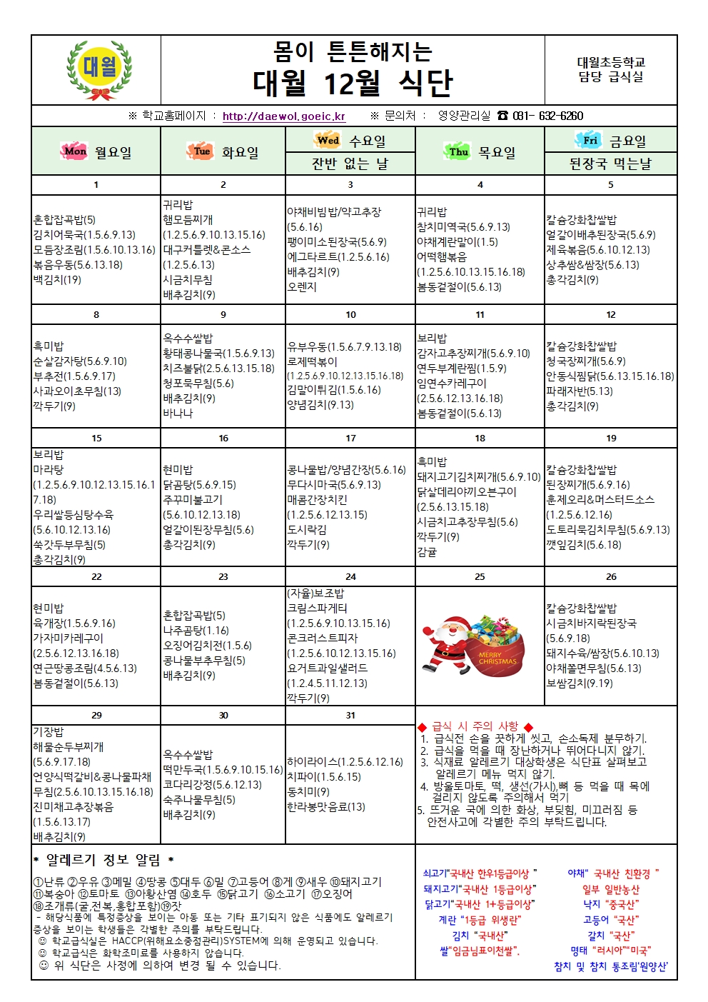 2025년 12월 예정식단표 및 급식 소식지 안내